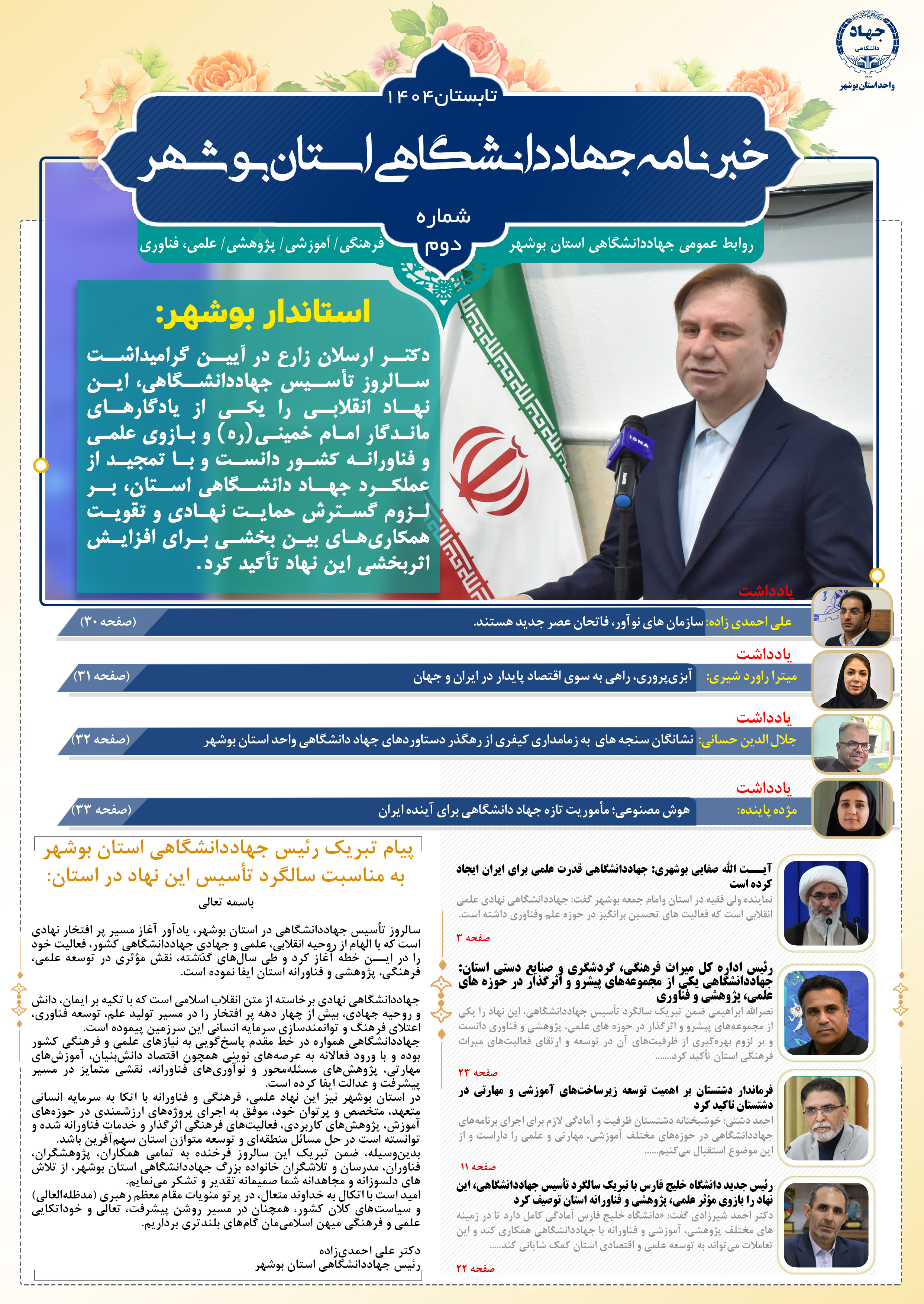 خبرنامه جهاددانشگاهی استان بوشهر، شماره دوم منتشر شد