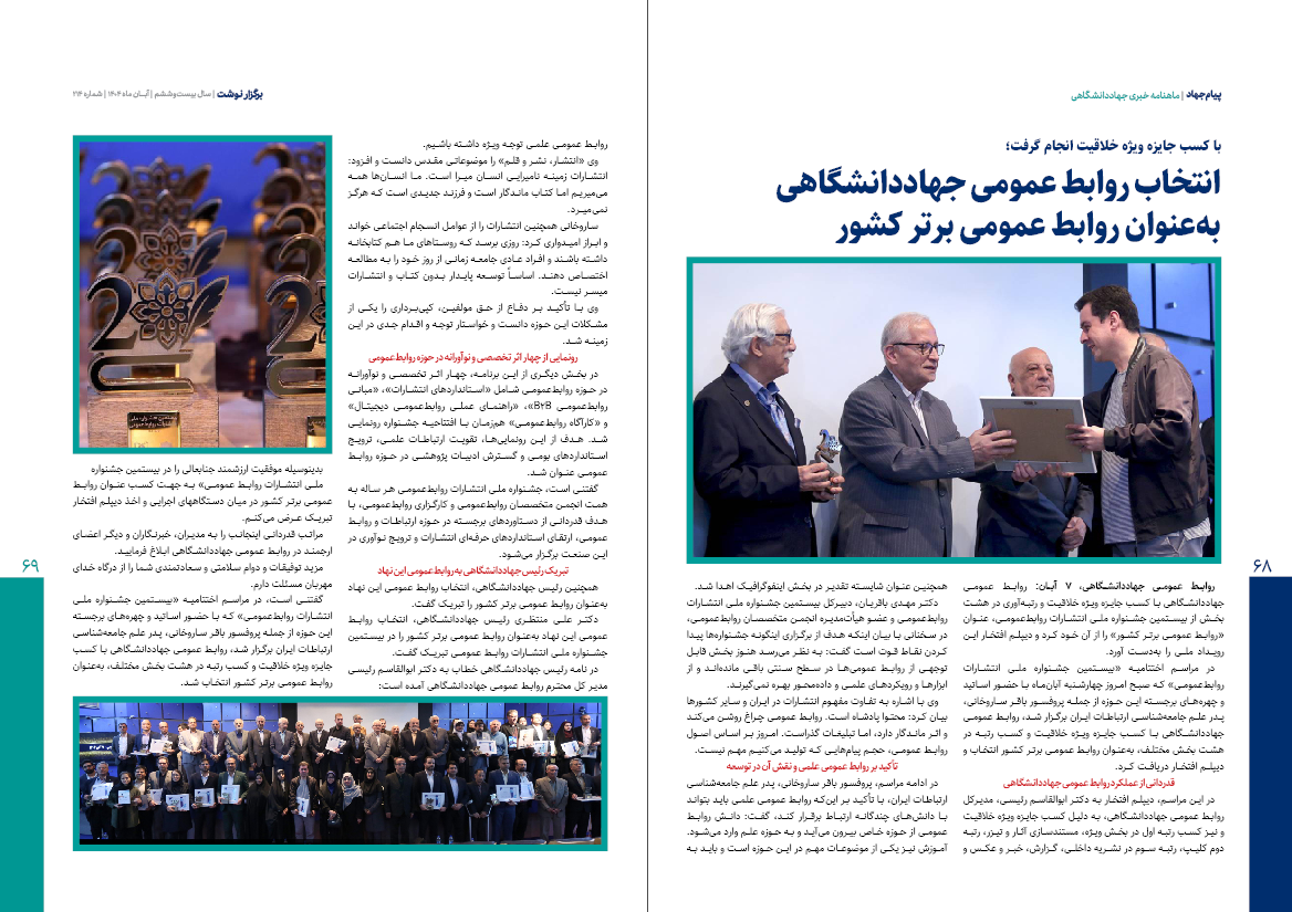 ✔️ انتخاب روابط عمومی جهاددانشگاهی به‌عنوان روابط عمومی برتر کشور