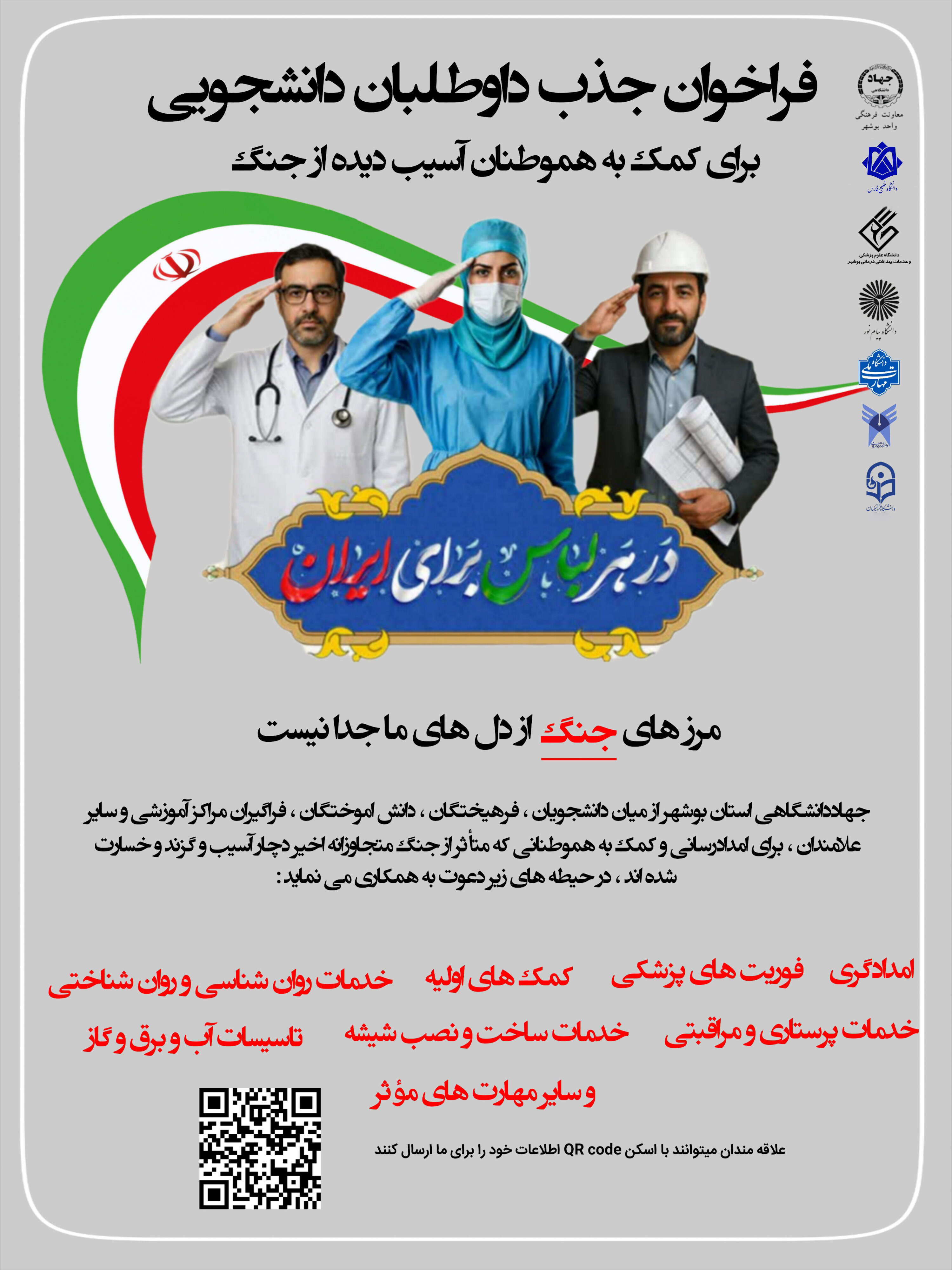 فراخوان جذب داوطلبان برای کمک به آسیبدیدگان جنگ رمضان در بوشهر
